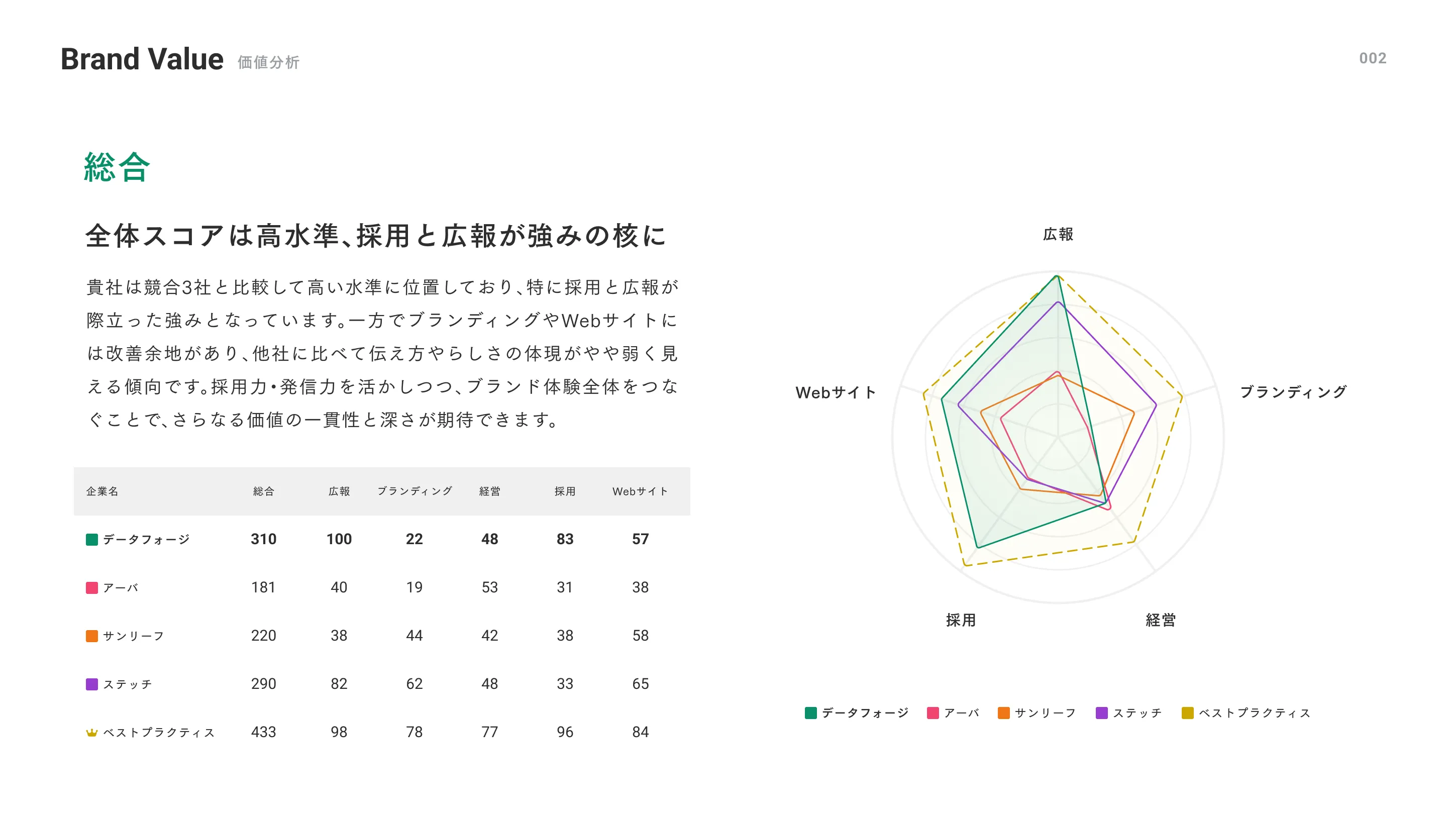 ブランドとしてのまとまりがどのくらい保たれているかが分かります。